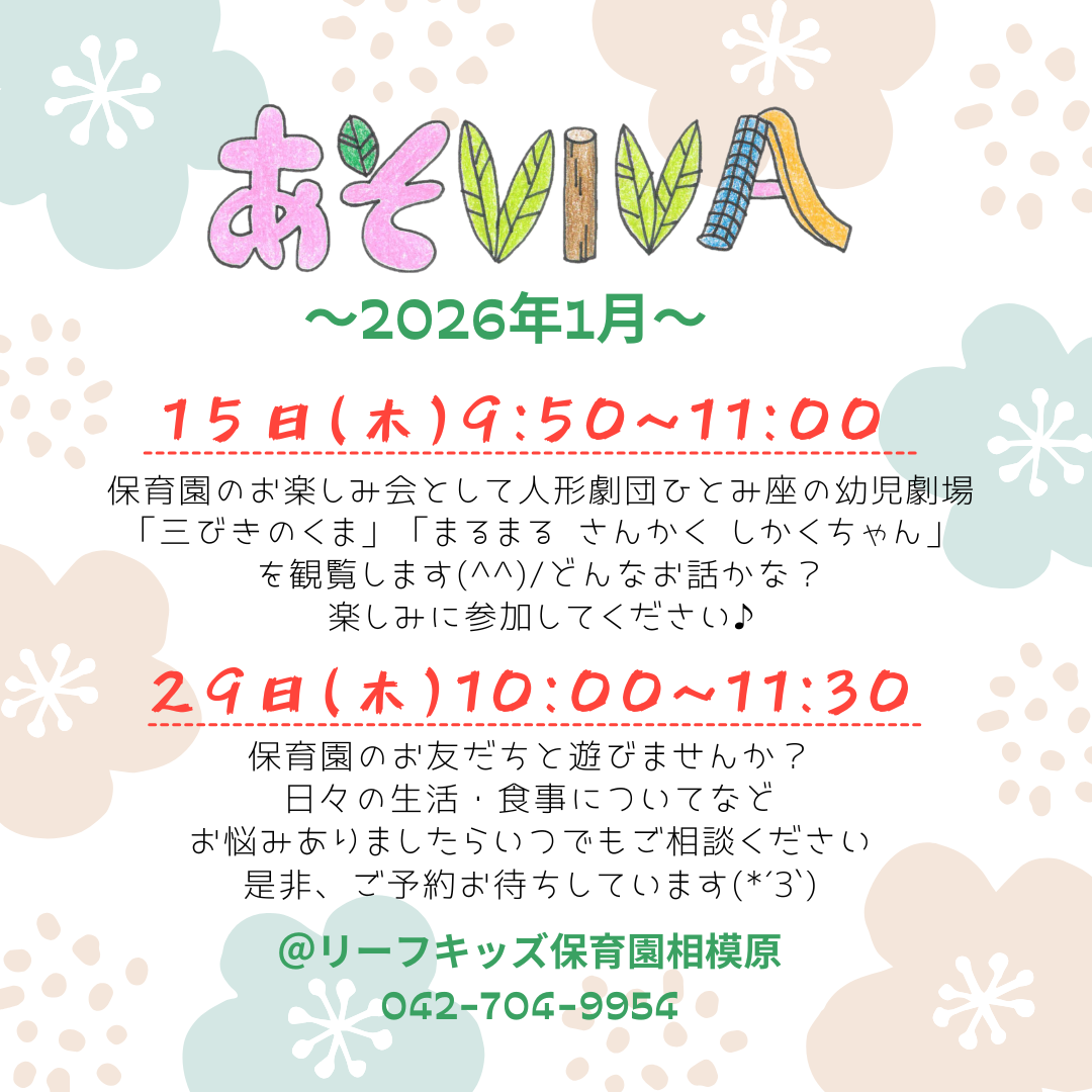 保育園のお楽しみ会として人形劇団ひとみ座の幼児劇場「三びきのくま」「まるまる さんかく しかくちゃん」